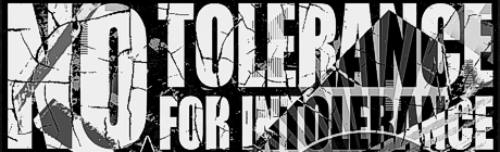 Black Fruit of the Loom Heavycotton Shirt with light grey 'No Tolerance for Intolerance'-design as chestprint. Make a statement! Limited to 23pcs, sieveprint... Pre-Order only / sold out